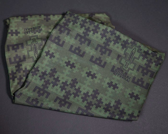 Kaklaskarė „BROLIAI AITVARAI” – Žalia – praktiška ir stilinga multifunkcinė kaklaskarė, puikiai tinkanti sportuojantiems bei mėgstantiems aktyvų laisvalaikį. Kaklaskarė sukurta patriotiškai nusiteikusiems žmonėms – jos rašte persipina svarbiausi Lietuvos simboliai: Gediminaičių stulpai ir Vyčio kryžius.
