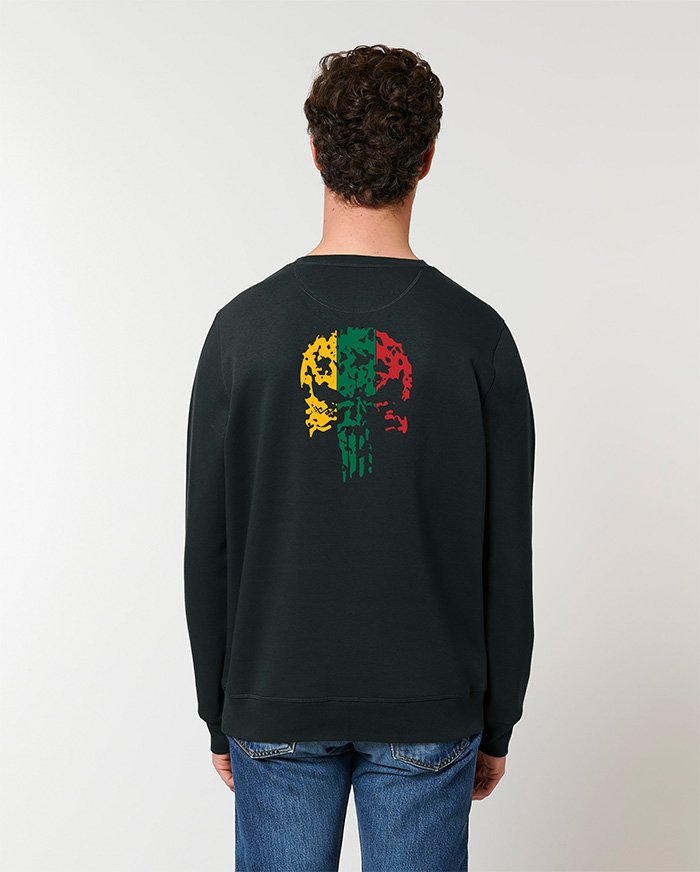 Džemperio fone puikuojasi Punisher kaukolė, kuri simbolizuoja karingumą, teisingumą ir kovą prieš blogį. Ji nuspalvinta Lietuvos vėliavos spalvomis – geltona, žalia ir raudona – išreiškiant patriotiškumą ir pasididžiavimą savo šalimi.