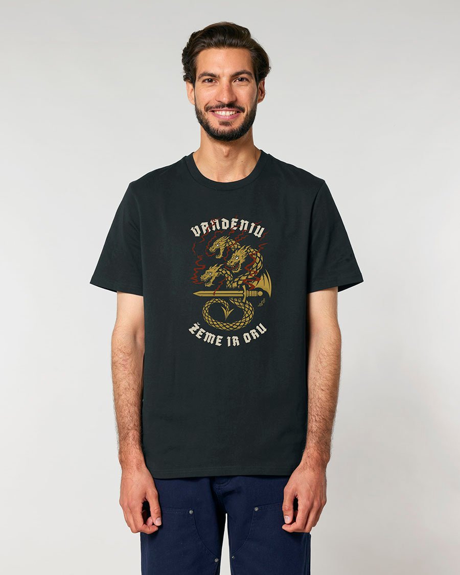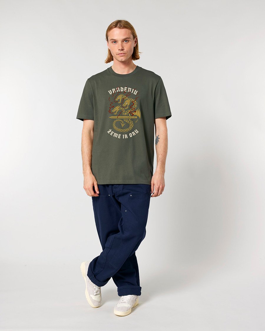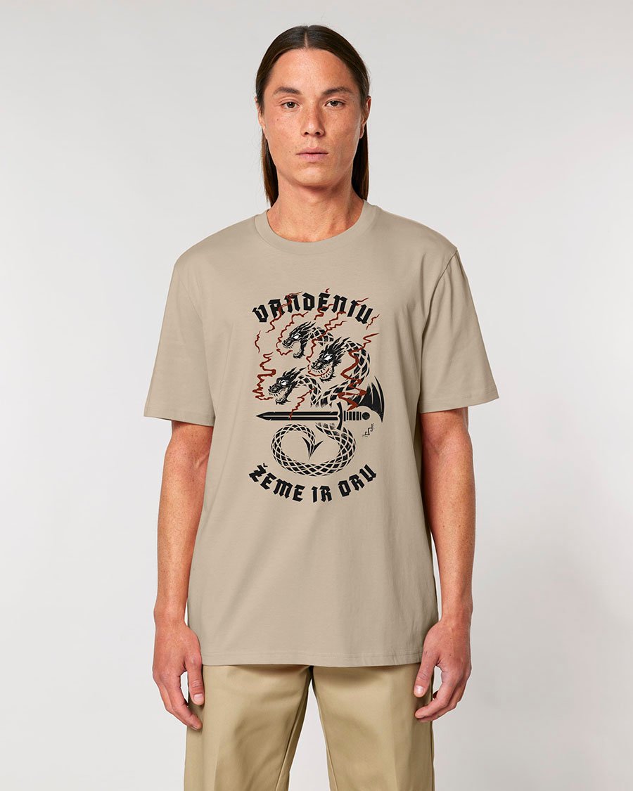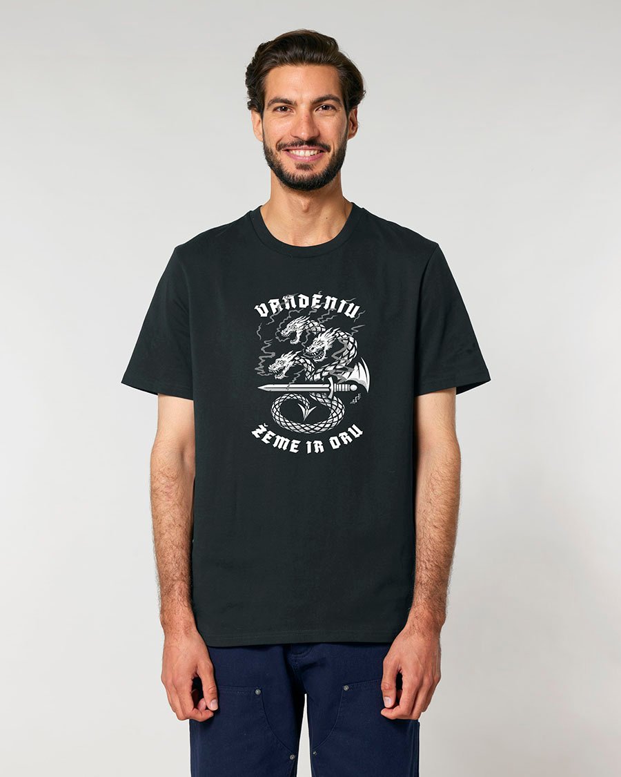 Išreikšk savo prigimtinę galią, baltų pasaulėjautą ir kario dvasią su išskirtiniais PAGAN™ marškinėliais „Vandeniu, žeme ir oru“. Šis dizainas įkvėptas Lietuvos kariuomenės Dragūnų bataliono simbolikos ir sukurtas tiems, kurie vertina discipliną, ištvermę ir ryšį su savo žeme. Tai daugiau nei drabužis – tai pareiškimas apie tavo vertybes.
