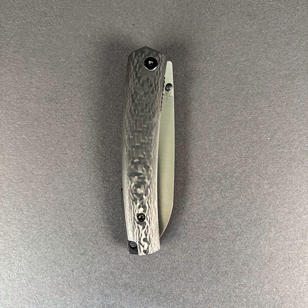 Anglies pluošto rankena ne tik atrodo stilingai, bet ir yra labai lengva bei patvari. Dėl keraminių guolių pivot sistemos peilis atsidaro sklandžiai, o Liner Lock užraktas ir thumb stud mechanizmas leidžia jį patogiai naudoti viena ranka.